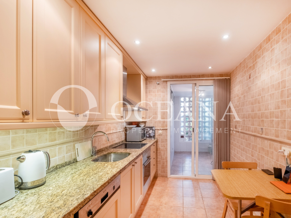Este luminoso apartamento con jardín se compone de dos habitaciones dobles y dos baños, un amplio hall de entrada, una cocina totalmente equipada con lavadero independiente y un amplio salón / comedor que se abre a la gran terraza, que tiene acceso directo a la hermosa Jardines tropicales y piscina.